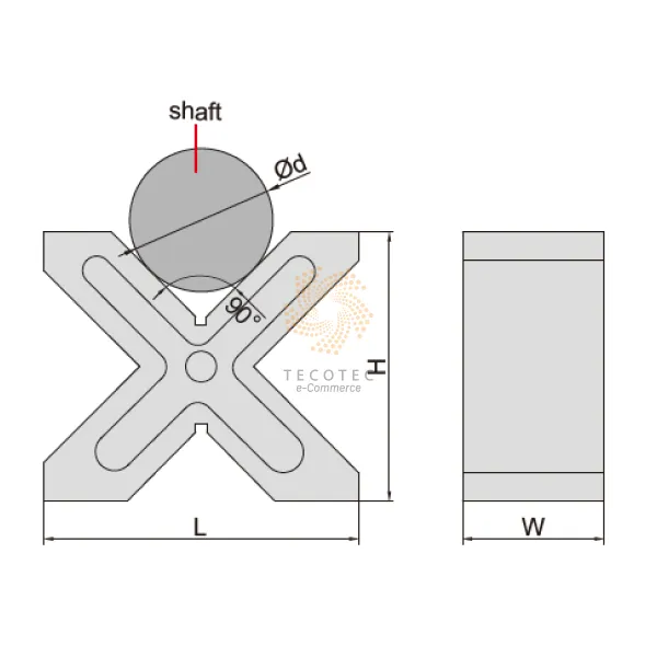 - Mỗi khối chữ V có bốn rãnh chữ V 90°.