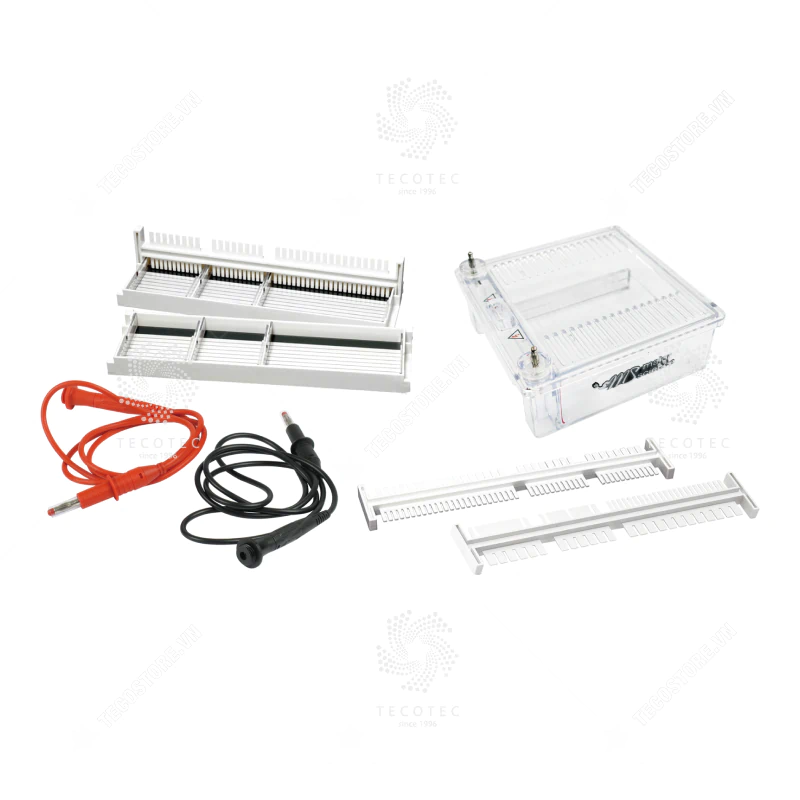 - Bộ điện di ngang MJ-105A mang lại nhiều ưu điểm trong quá trình sử dụng cho người vận hành. Bể thiết kế đúc nguyên khối giúp tránh khỏi việc rò rỉ khi đổ hóa chất. Dễ dàng đổ gel và nạp mẫu. Thiết bị được thiết kế từ vật liệu polycarbonate có độ bền cao và chịu nhiệt lên tới 130°C. Nắp khóa liên động an toàn ngăn chặn các rủi ro về điện trong quá trình điện di. Ứng dụng hiệu quả cho đa dạng các thí nghiệm như kỹ thuật Northern blotting, Southern blotting, kỹ thuật Cosmid library restruction analysis, STS screening, kỹ thuật Microsatellites, kỹ thuật PCR… Máy có thiết kế nhỏ gọn, tiết kiệm hóa chất cho quá trình sử dụng; mang lại sự thuận tiện và hiệu quả kinh tế cho người dùng.