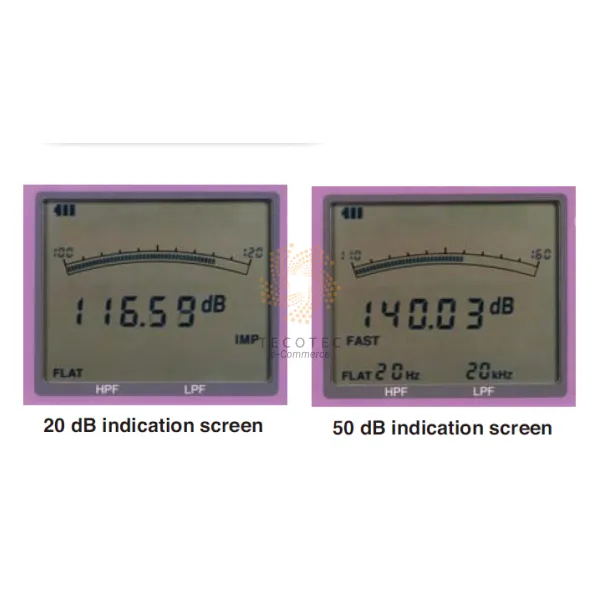 - Chế độ đo: mức áp suất âm thanh, mức âm thanh tối đa hoặc mức áp suất âm thanh cao nhất.