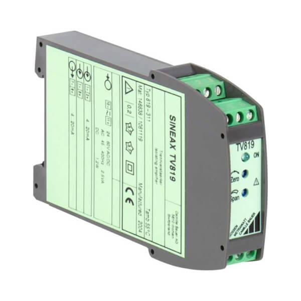 Mục đích của bộ khuếch đại cách ly SINEAX TV 819 là để cách điện các tín hiệu đầu vào và đầu ra, tương ứng để khuếch đại và / hoặc thay đổi mức hoặc loại tín hiệu (dòng điện hoặc điện áp) của tín hiệu đầu vào. SINEAX TV 819 nhỏ gọn cung cấp nhiều lựa chọn phạm vi đầu vào và đầu ra mà người dùng có thể xác định được bằng các jumper và chiết áp.