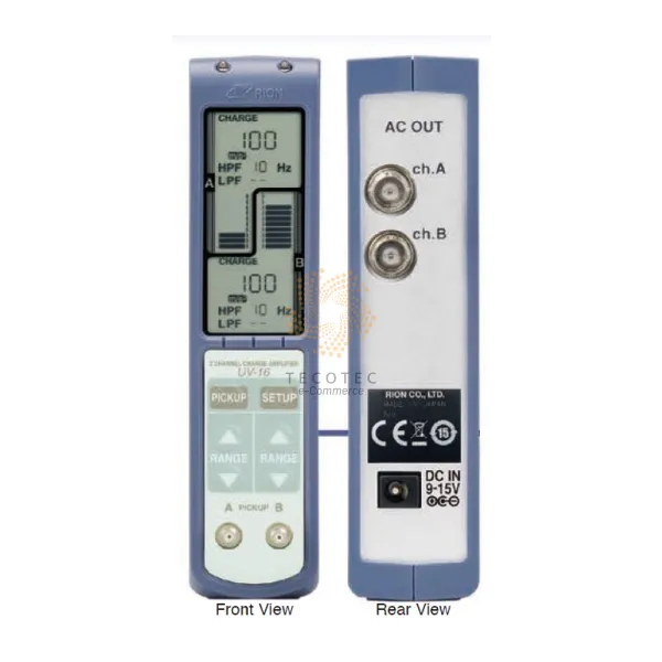 - UV-16 là bộ khuếch đại điện tích 2 kênh tương thích với đầu vào của máy đo gia tốc áp điện và máy đo gia tốc có bộ tiền khuếch đại tích hợp. Bộ khuếch đại tích điện đa kênh có thể được cấu hình bằng cách ghép nối tối đa 16 đơn vị và 32 kênh với nhau.