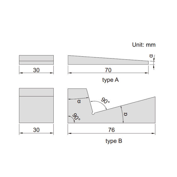 | Mã | Căn mẫu góc bao gồm | Góc chuẩn α | Loại | Độ chính xác |
