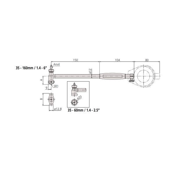 | Dải đo | Mã đặt hàng Không bao gồm đồng hồ so | Mã đặt hàng Với 2046SB Độ phân giải 0.01mm | Mã đặt hàng Với 2109SB-10 Độ phân giải 0.001mm | Số lượng đe | Số lượng miếng chặn |