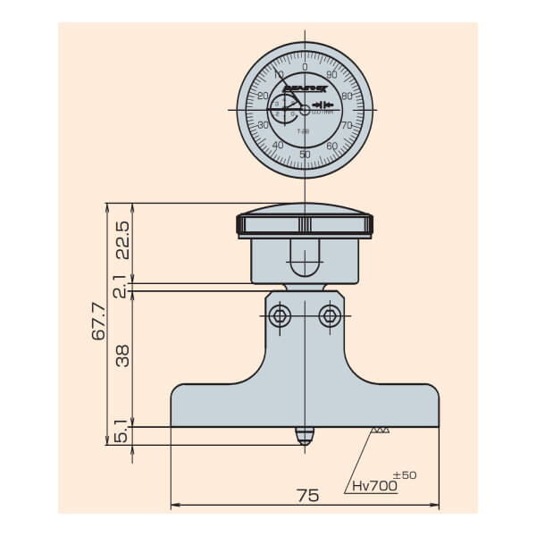 - Mặt đồng hồ nằm vuông góc với đầu tiếp xúc giúp cho việc đọc giá trị đo từ trên xuống.