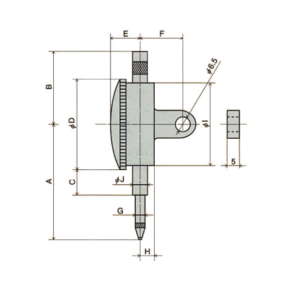 - Kích thước: A=65 mm; B=41.5 mm; C=18.5 mm; D=53 mm; E=14.5 mm; F=20 mm; G=4 mm; H=6.5 mm; I=49 mm; J=8 mm