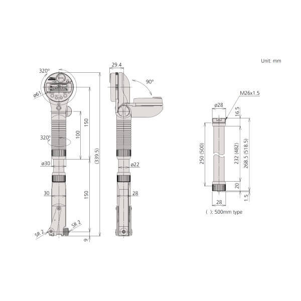 - Cài đặt gốc, cài đặt 0, thiết lập trước, chức năng bật/tắt, chuyển đổi inch/mm, đầu ra dữ liệu, kiểm tra dung sai go/no-go