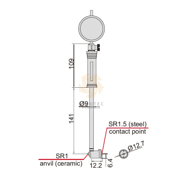 - Loại đồng hồ so: Đồng hồ so điện tử, dải 12.7 mm/0.5″, độ phân giải 0.001 mm/0.00005″ (mã 2108-101F)