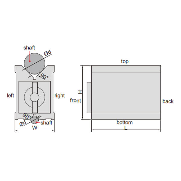 Kích thước (LxWxH)Dải đo của trục (Ød0)Lực từĐộ song song của rãnh chữ V với mặt trên và đáy, phải và tráiĐộ vuông góc giữa rãnh V với mặt sau