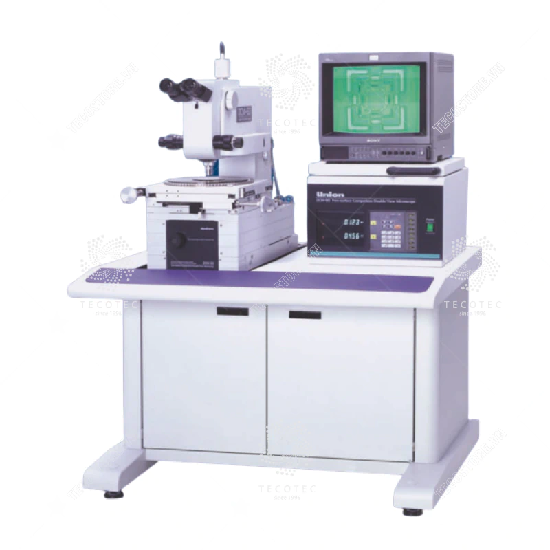- Kính hiển vi này là hệ thống kính hiển vi độc đáo đặt chồng các mẫu vật (tấm wafer) trên và dưới trong trường quan sát của kính hiển vi, sau đó so sánh sự dịch chuyển để đo chiều dài dịch chuyển bằng hệ thống đo. Vì các vật kính được lắp đặt ở trên và dưới là 5 loại, có độ phóng đại tổng từ 50X đến 1000X, nên có thể quan sát được nhiều mẫu vật khác nhau.