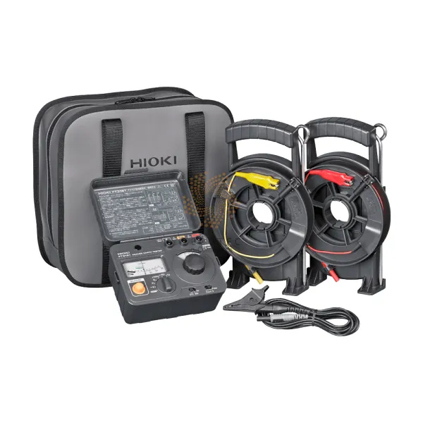 Phụ kiện | Que nối đất phụ trợ L9840 (bộ 2 mảnh) × 1, cáp đo L9841 (kẹp cá sấu, màu đen 4 m (13,12 ft)), cáp đo L9842-11 (màu vàng 10 m (32.81 ft), được trang bị cuộn dây), cáp đo L9842 -22 (đỏ 20 m (65,62 ft), được trang bị bộ cuốn) × 1, LR6 (AA) pin kiềm × 6, hộp đựng C0106 × 1, sách hướng dẫn × 1 | ||