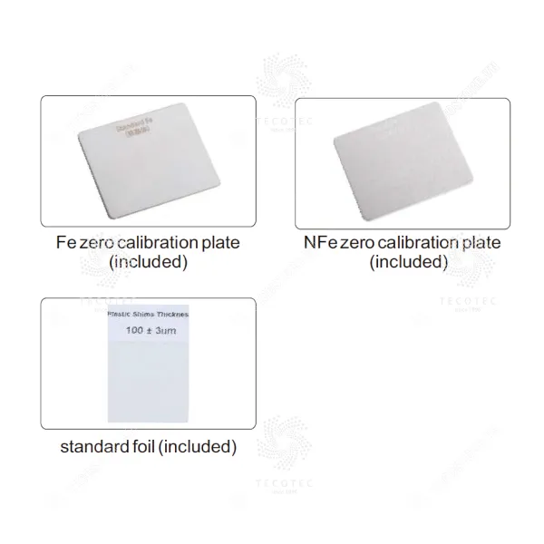 • Trọn bộ giao hàng: máy chính, tấm hiệu chuẩn Fe, tấm hiệu chuẩn NFe, lá chuẩn 100 µm, pin AA 1.5 V x 2