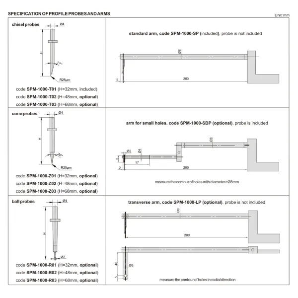 Độ chính xác đo cung±(1.5+R/12) µm, R là đầu đo tiêu chuẩn 2-10 mm