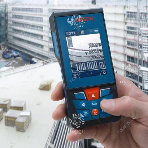 - Máy đo laser ngoài trời chuyên nghiệp này có kính ngắm máy ảnh kỹ thuật số với chức năng thu phóng giúp đo chính xác khoảng cách lên đến 100 m. Hình ảnh máy ảnh và các phép đo dễ dàng nhìn thấy trên màn hình màu lớn, độ tương phản cao, 2,8 inch IPS, có thể xoay để xem chân dung hoặc phong cảnh. Để có tài liệu thuận tiện, bạn có thể chuyển kết quả đo qua Bluetooth đến Ứng dụng Bosch MeasureOn. Máy đo laser này là giải pháp lý tưởng cho các công việc khó khăn nhờ khả năng chống bụi và nước IP54, và kính hiển thị chống xước.