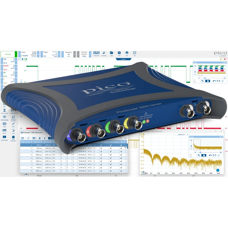 - Máy hiện sóng PicoScope 3418E là một thiết bị nhỏ gọn trong khi vẫn đáp ứng các yêu cầu về thông số kỹ thuật và hiệu suất cao trong môi trường lab, cũng như trong trường hợp phải cơ động.
