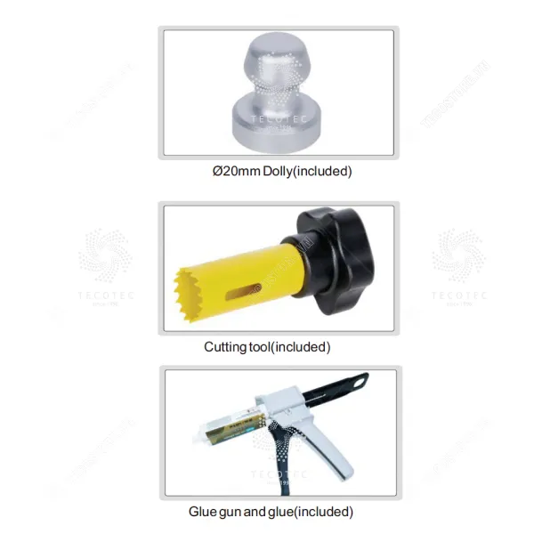 - Trọn bộ giao hàng: máy chính, đĩa thử x 20, dao cắt Φ20 mm, bộ sạc, cáp USB, súng bắn keo, keo dán 3M