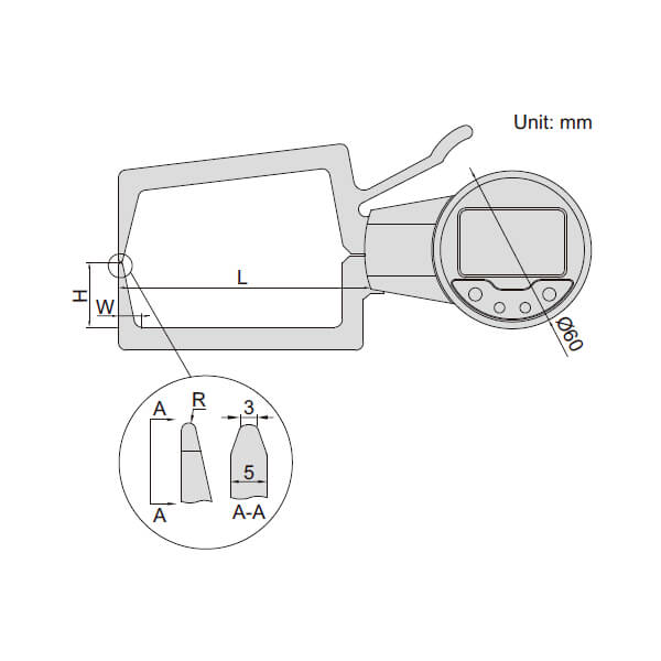 - Nút chức năng: hiển thị dung sai Go và No Go, thiết lập trước dữ liệu, đo max/min, giữ giá trị đo, chuyển đổi mm/inch, đo ABS/INC