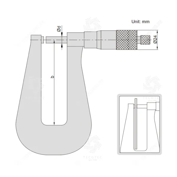 - Panme họng sâu phù hợp đo tấm kim loại, giấy và nhựa