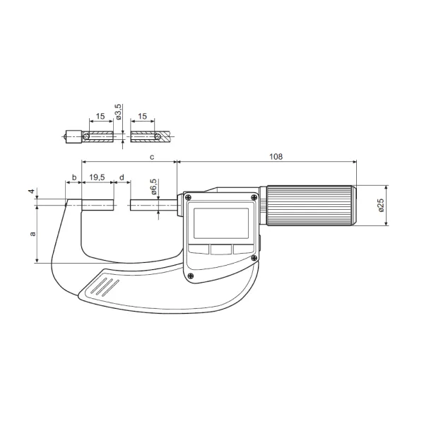 - Chức năng: Reset, ABS, mm/inch, cài đặt gốc, giữ giá trị, khóa phím, hiển thị dung sai, xuất dữ liệu