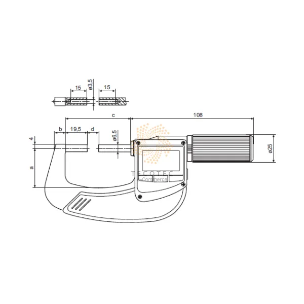- Chức năng: Reset, ABS, mm/inch, cài đặt gốc, giữ giá trị, khóa phím, hiển thị dung sai, xuất dữ liệu