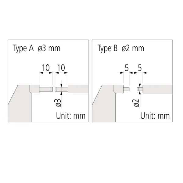 - Đầu mỏ đo và trục chính có đường kính nhỏ, sử dụng đo rãnh trục, rãnh then