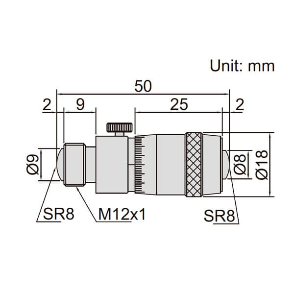 - Dải đo đầu panme: 50-63 mm