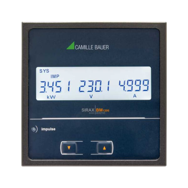 Thiết bị đo tham số điện năng SIRAX BM1200 phù hợp cho việc lắp đặt cố định và đo các thông số điện quan trọng trong hệ thống hạ thế. Đồng hồ được ứng dụng cho hệ thống 1 hoặc 3 pha với các kết nối 2, 3 hoặc 4 dây và Tích hợp bộ đo công suất hữu / vô công, hiệu quả về chi phí thay thế các công tơ điện truyền thống. Các giá trị đo được hiển thị trên màn hình LCD.