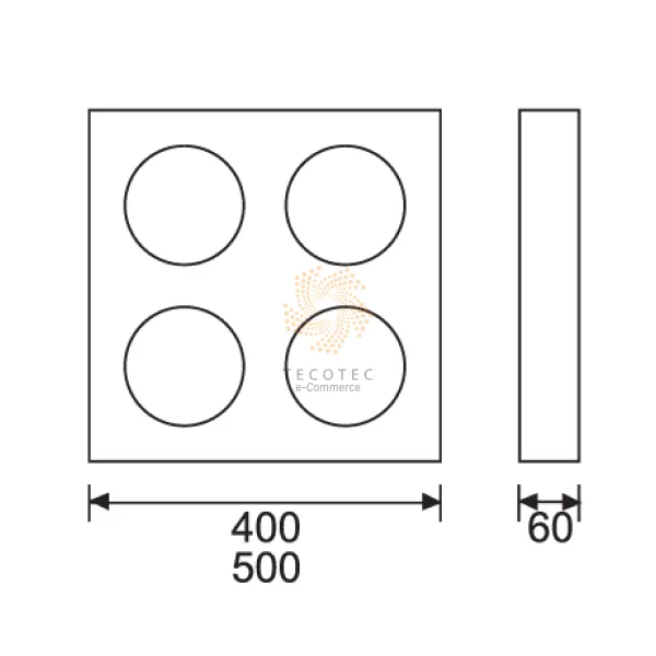 - Kích thước: 400 x 400 x 60 mm