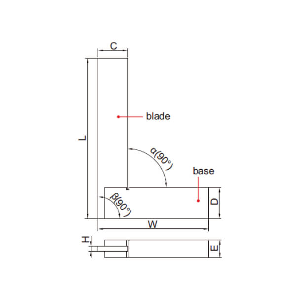 | Mã đặt hàng | Kích thước (LxW) | Độ vuông góc | C | D | H | E |